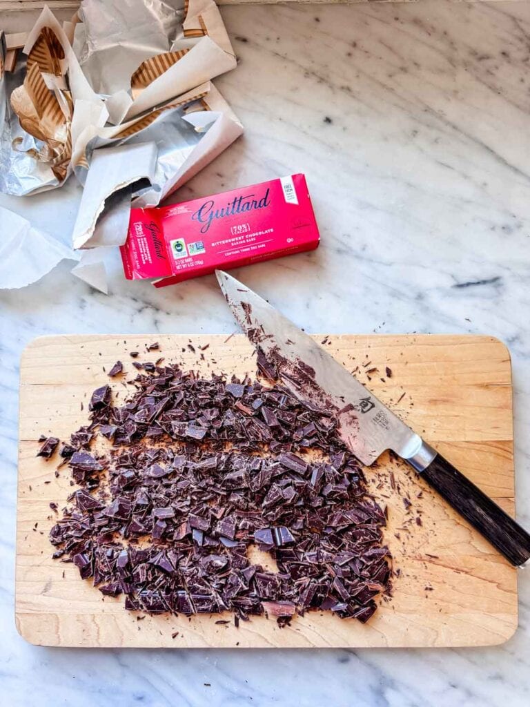 Pot de crème is an easy dessert and requires only five ingredients. Since there are so few ingredients and chocolate is the main ingredient, it has to be of good quality. I always use Guittard Chocolate. It’s available at my local grocery store and Whole Foods.