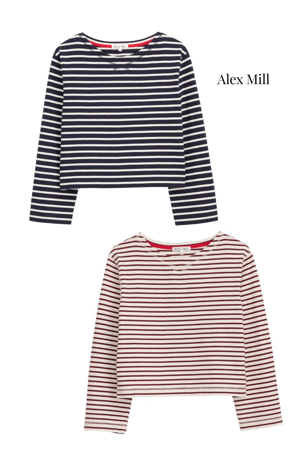 Alex Mill just released the Merseille Striped tees in navy and burgundy. The design is based on a vintage find from Marseille, but the fit was modernized with updated proportions. And of course. 100% cotton. You can shop all my favorites from Alex Mill here.