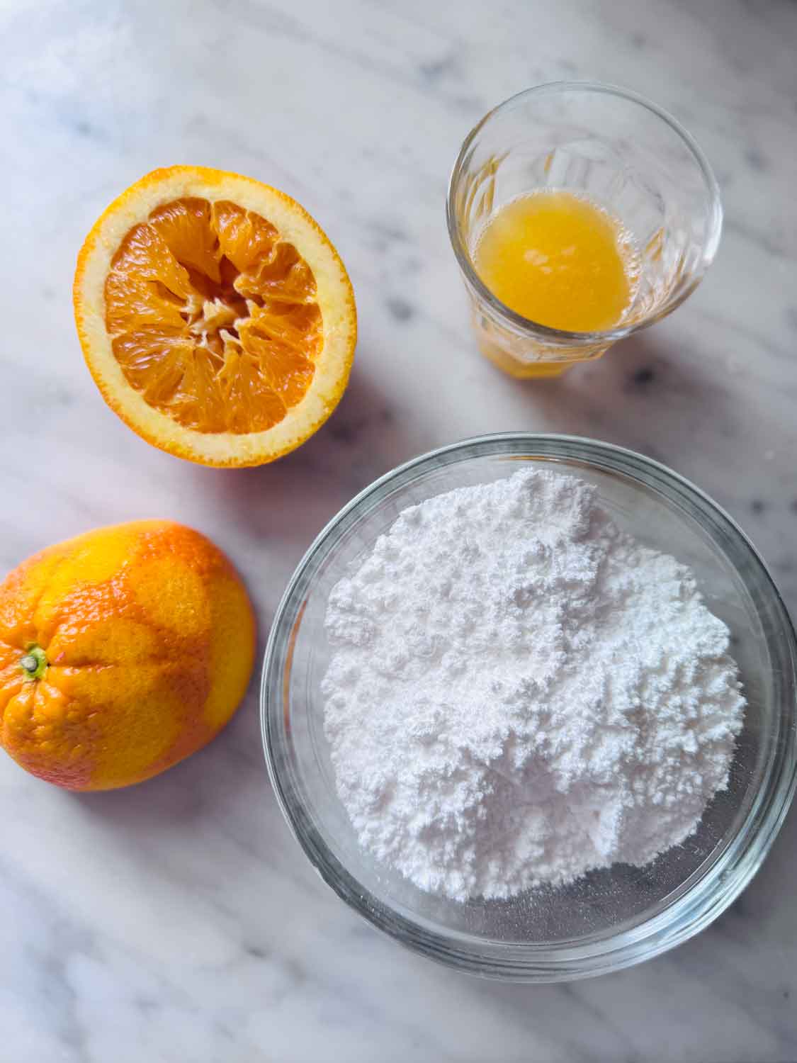 - In a small bowl, whisk together the powdered sugar and orange juice until combined. You may need to add a little more powdered sugar to thicken the glaze or some more orange juice to thin the glaze.
