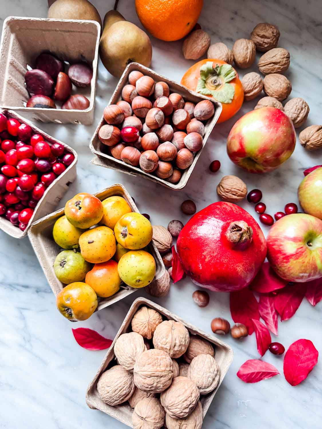 - Tuck nuts, cranberries, and hazelnuts into empty spaces for texture.
