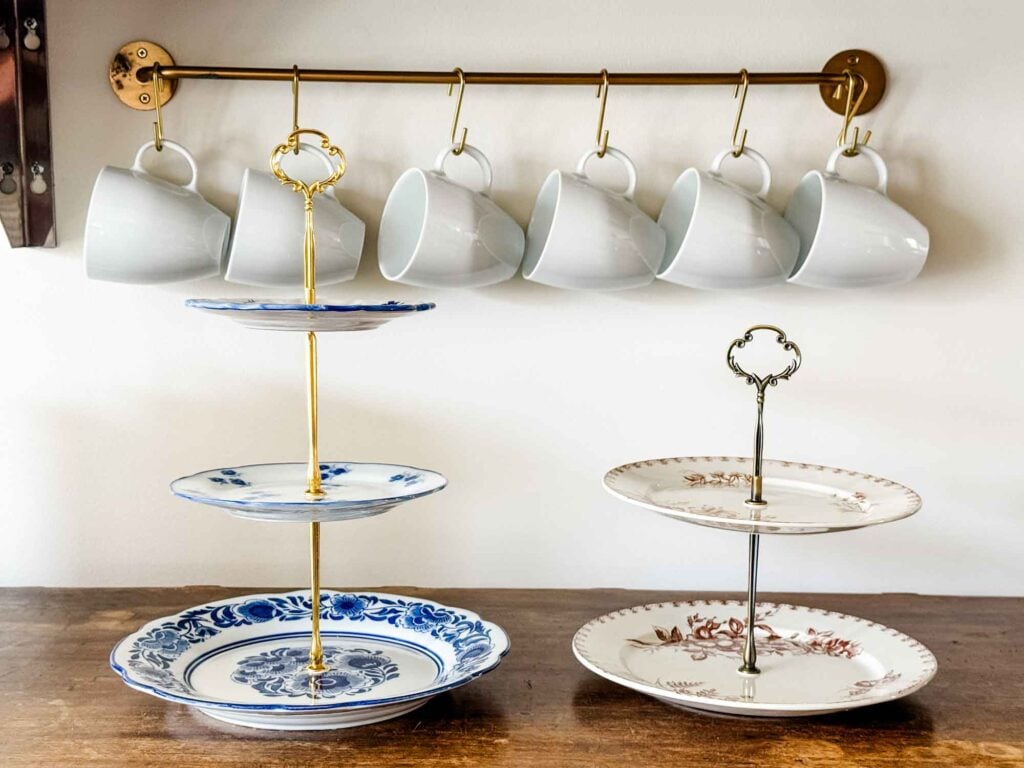 Making a tiered stand with vintage plates is one of those projects I’ve been thinking about trying for a while. I almost always have a few extra plates on hand—from flea markets in France, and it turns out they’re perfect for this kind of project.