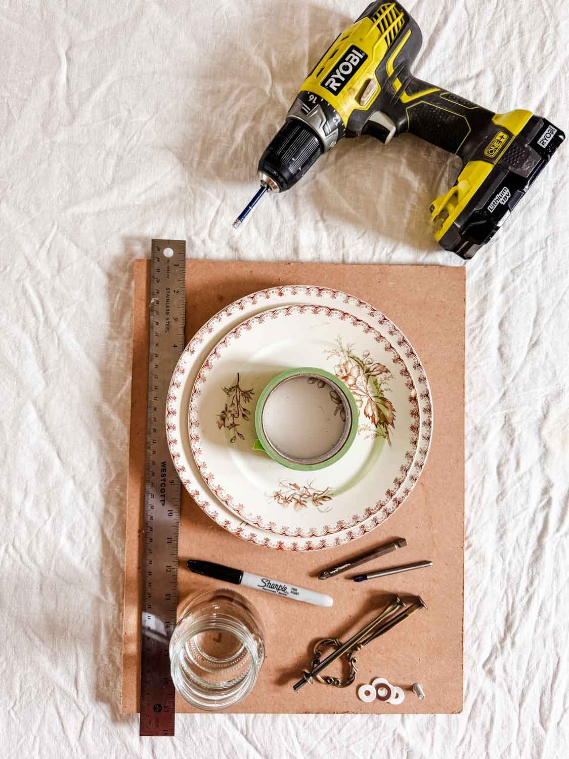 Once you have your plates, you only need a few tools, some tiered stand hardware, and a little bit of time to create a beautiful piece for entertaining.