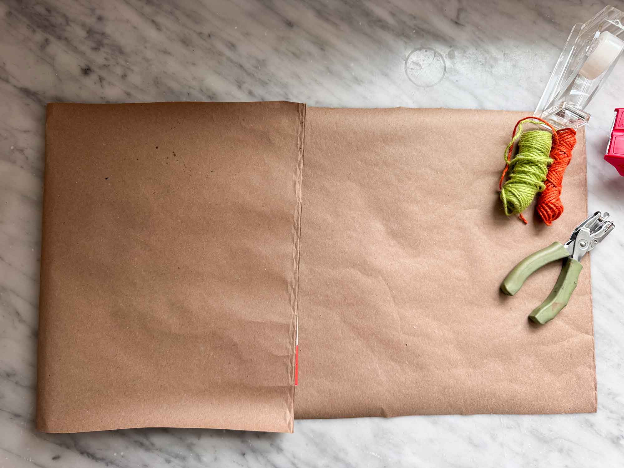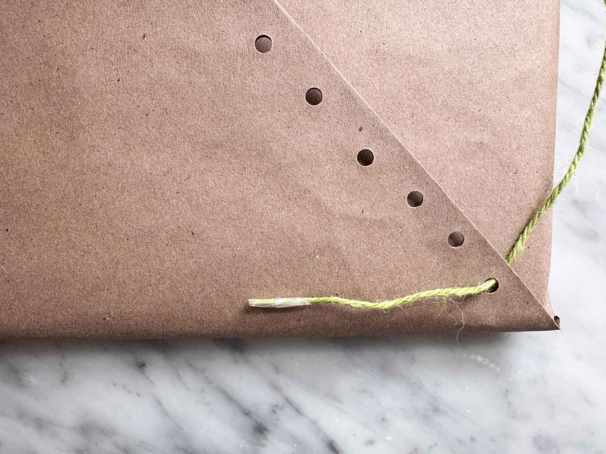 Using a hole punch, make an even number of holes along the edge of the pocket. This is why it’s beneficial to use heavier paper, like kraft paper, to support the holes.