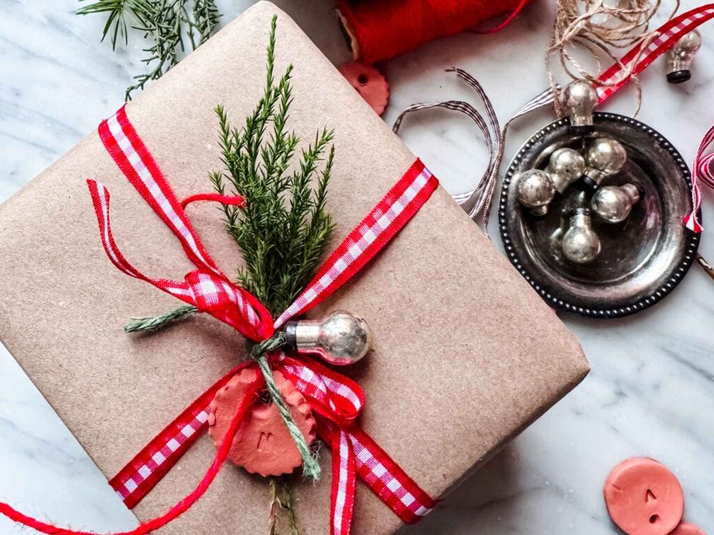 This year, I’m keeping my gift wrap simple, natural, and a little bit personal. One of my favorite ways to add a handmade touch is with clay initial tags—tiny air-dry clay ornaments stamped with each person’s initial. They look charming tied onto gifts, and the best part? They’re reusable! Think of them as tiny, personalized keepsakes disguised as gift tags.