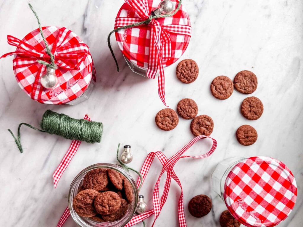 Ever since I made mini chocolate chip cookies and put them into Bonne Maman jars, I’ve been thinking, what other cookies would work as a mini? Well, turns out, my chewy ginger cookies are perfect for making into mini ones!