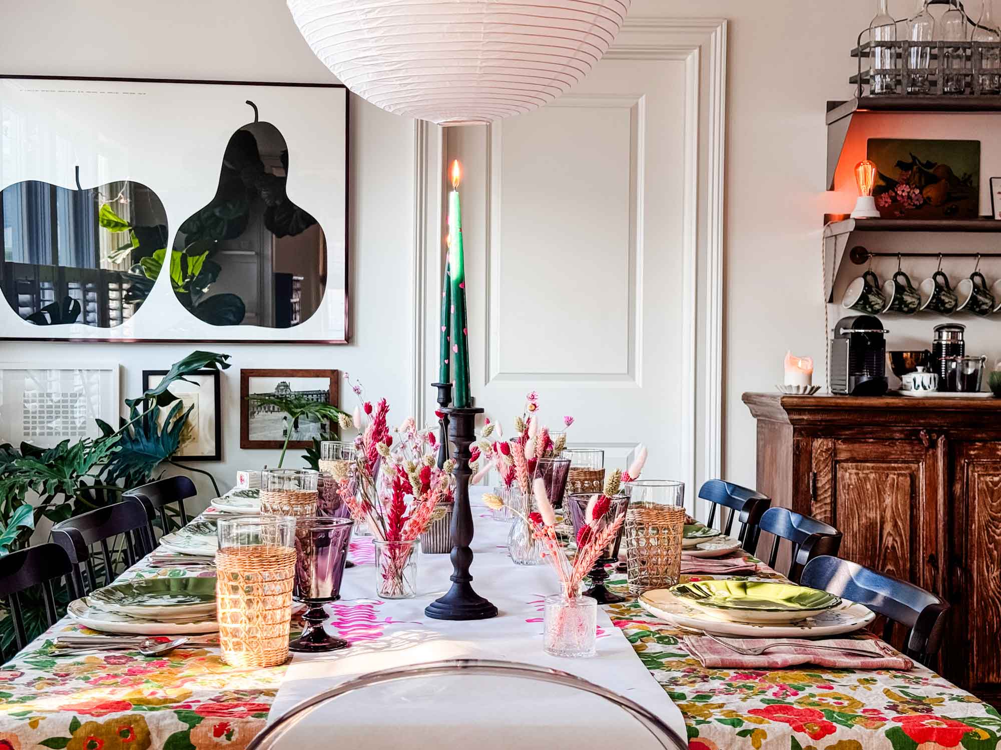 If you’re hosting a little February lunch of your own, I can’t recommend this combination enough: layered plates, linens, a handwritten runner, and dried flowers in individual vases your guests can take with them. It’s simple, personal, and full of heart—exactly how a Valentine’s Day with friends should feel.