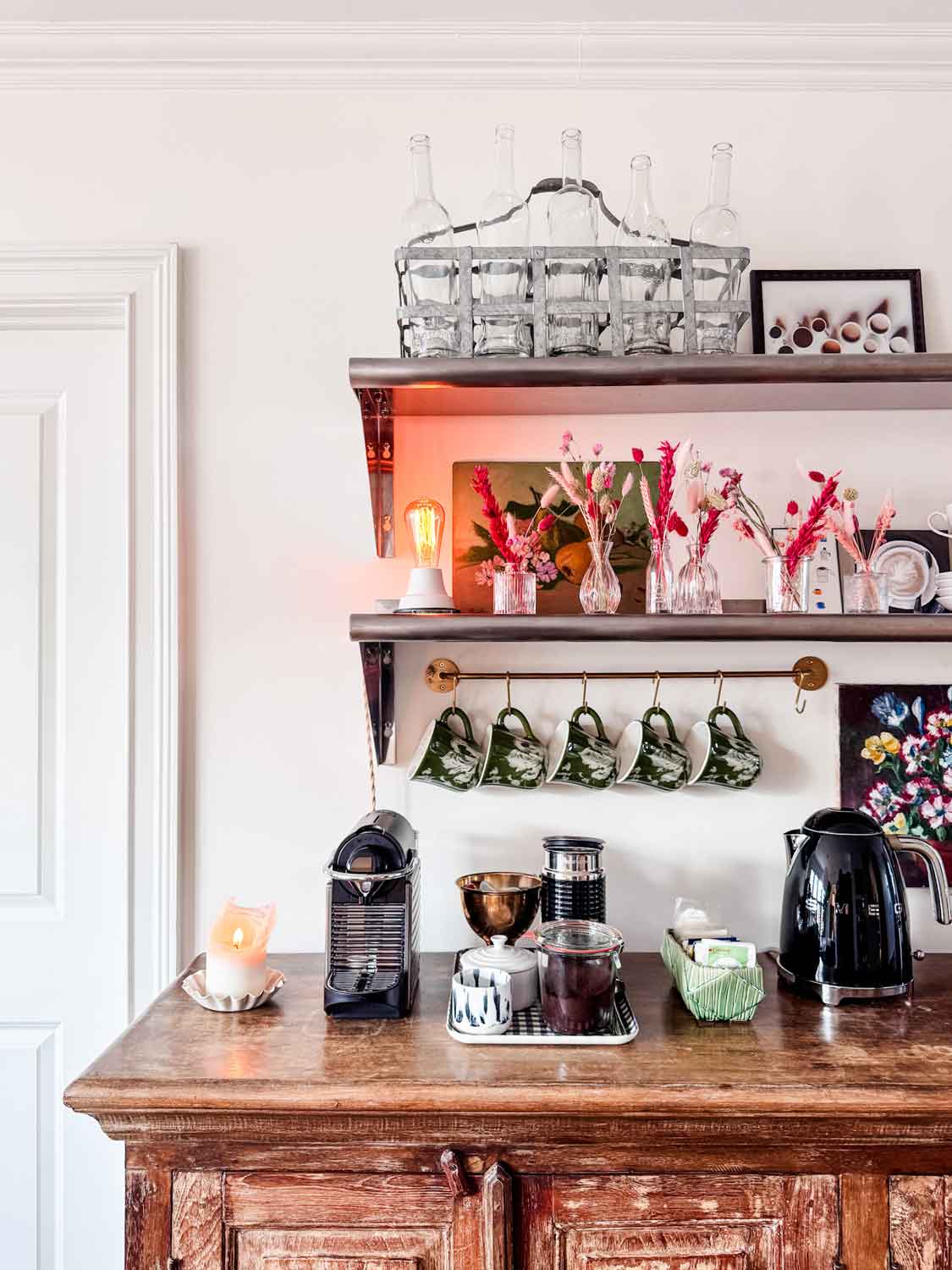 For the flowers, I kept things simple and sentimental. Instead of one large arrangement, I used dried flowers tucked into small individual vases—one for each place setting. Dried florals are wonderful for this kind of gathering: they last, they travel well, and you can buy them ahead of time.