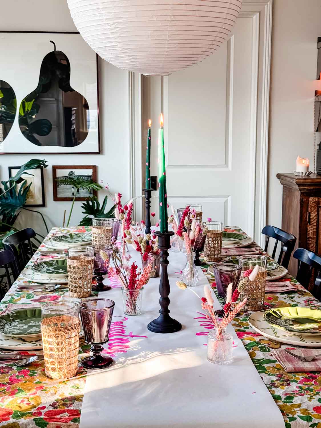 If you’re hosting a little February lunch of your own, I can’t recommend this combination enough: layered plates, linens, a handwritten runner, and dried flowers in individual vases your guests can take with them. It’s simple, personal, and full of heart—exactly how a Valentine’s Day with friends should feel.