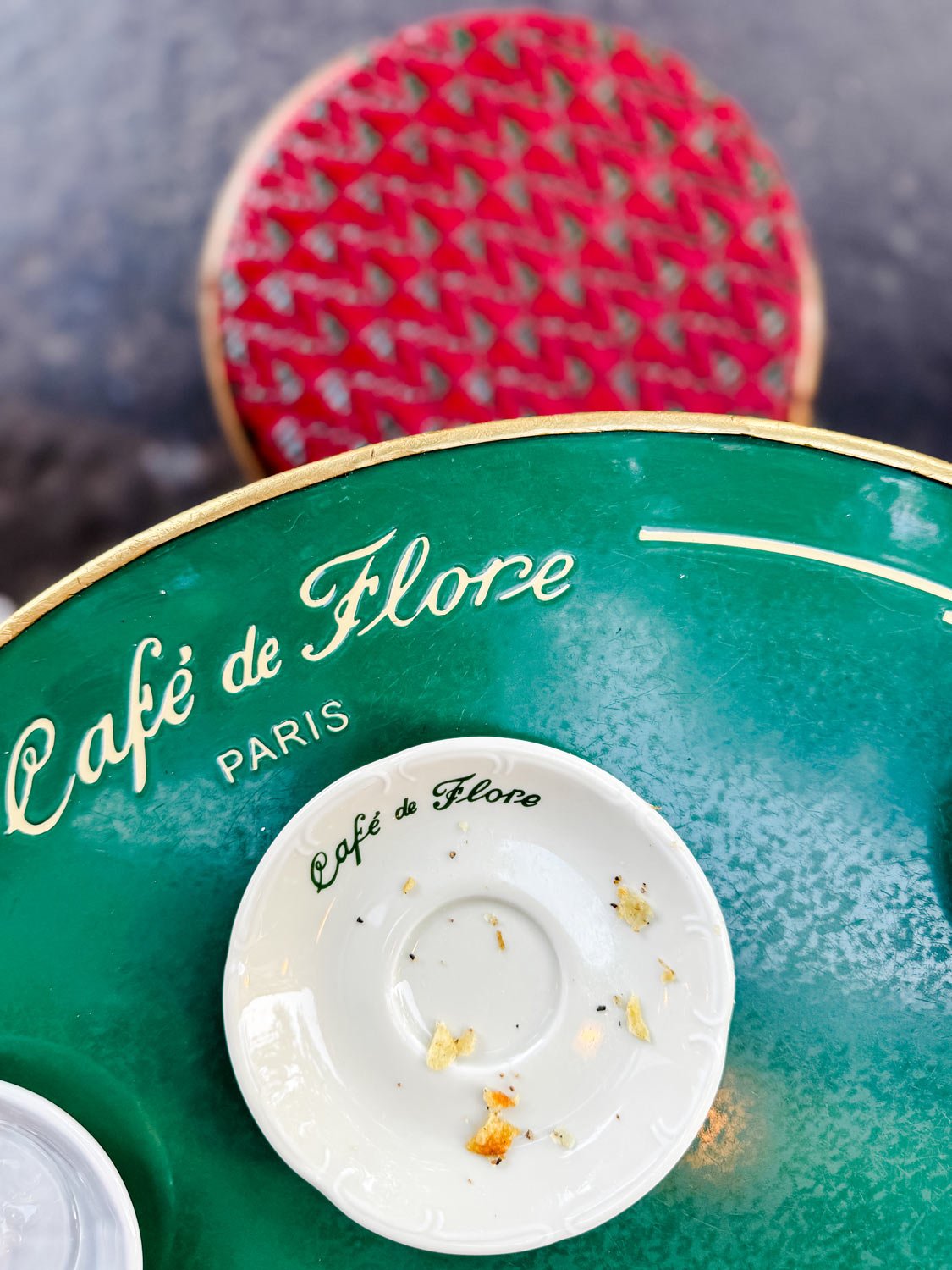 Café de Flore is one of our favorite spots to enjoy a drink and a snack. Enjoyed by locals and tourists alike. Upstairs, you’ll find a glass case filled with little porcelain dishes, ashtrays, cups, and small plates, as well as pitchers featuring the Café de Flore logo, making them the perfect little souvenirs.