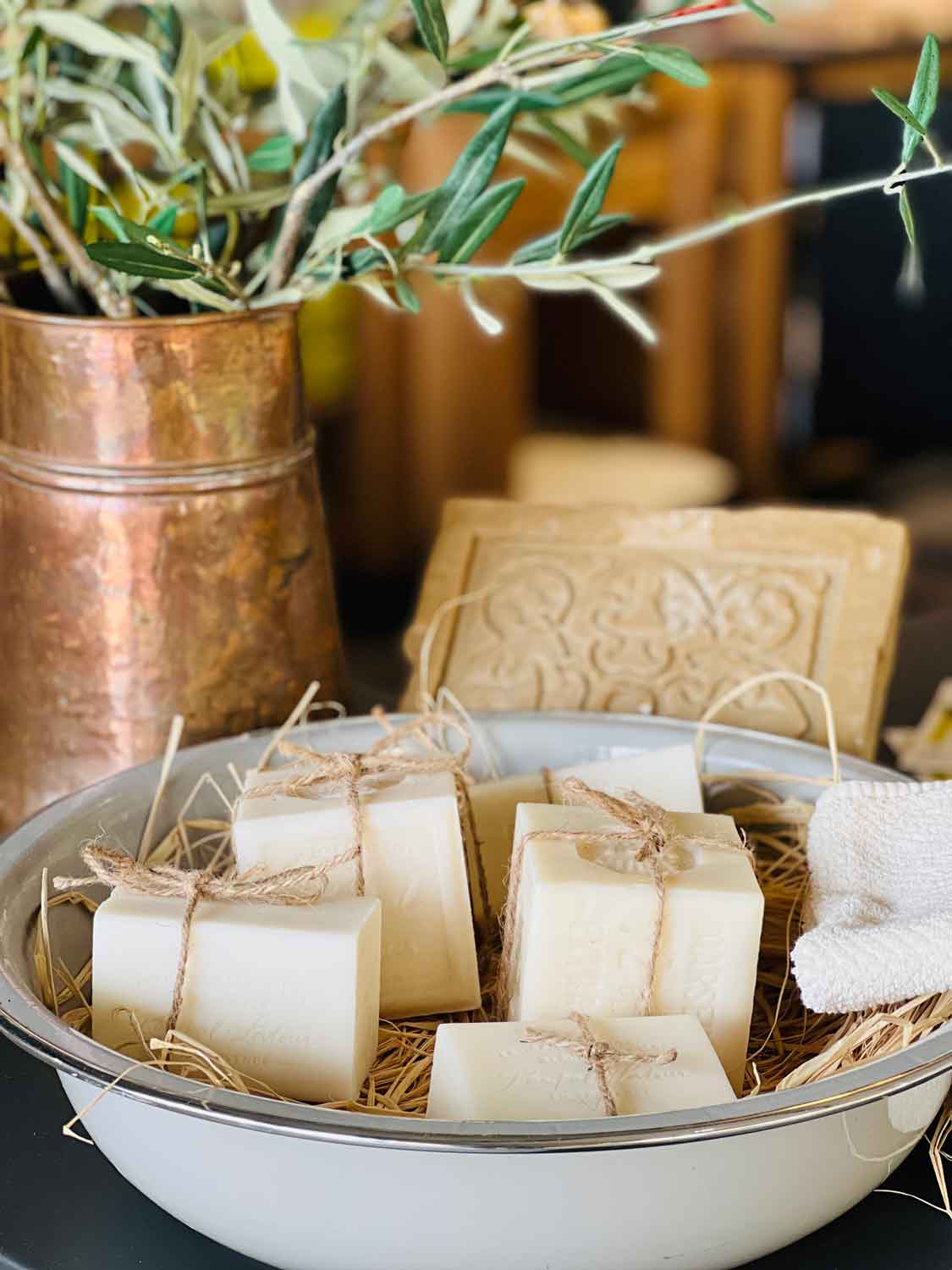 Inside the factory store, you’ll find more soap than you’ve ever imagined. There are soaps scented with everything you can find in the region: all kinds of herbs, lemon, olive oil, and lavender. Bars of all shapes and sizes, shower gels, shampoo, dish soap, and hand soap line the shelves and walls.