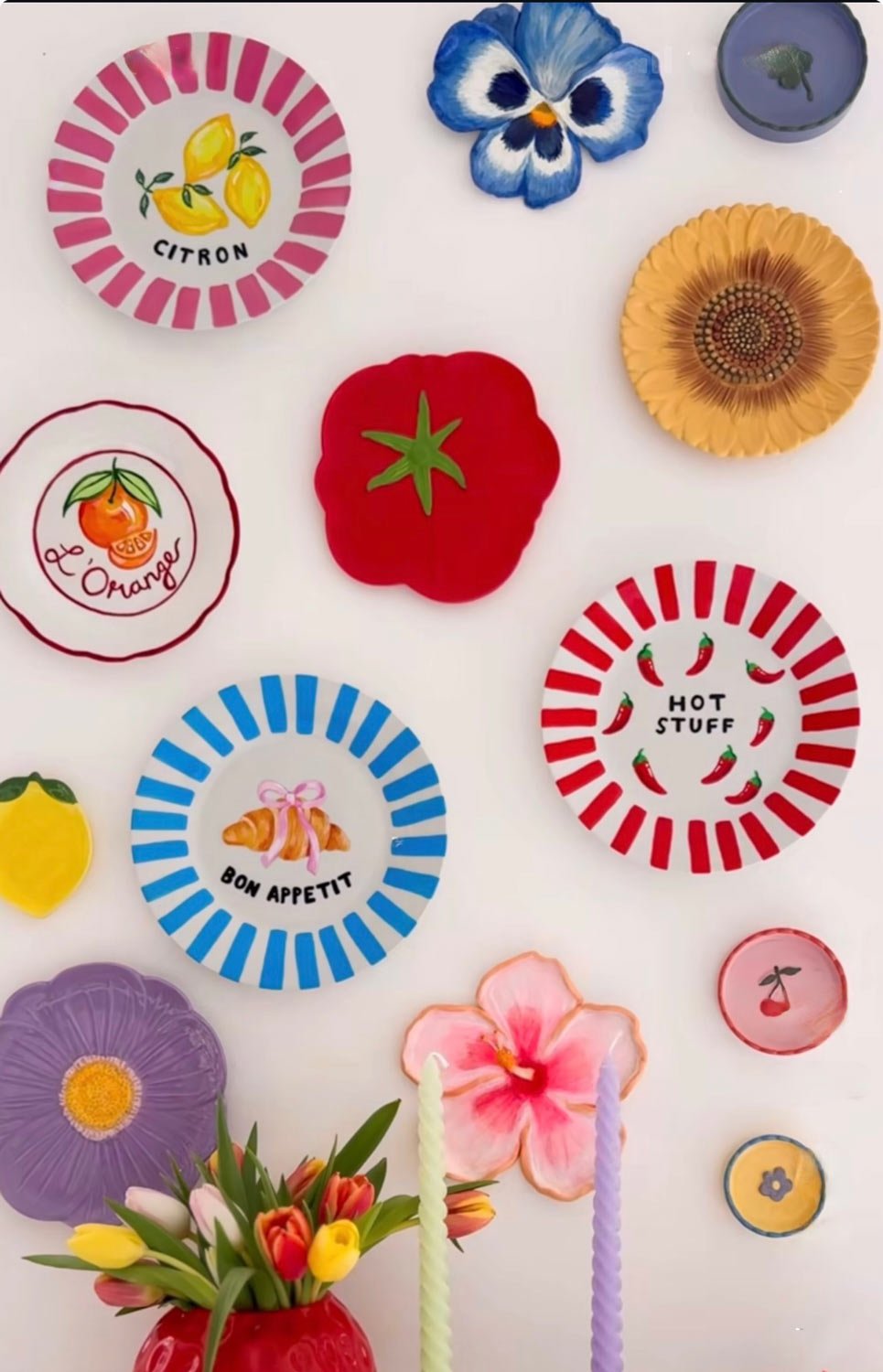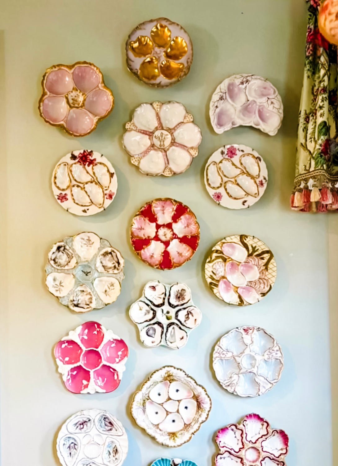 The oyster plates are amazing!!!!!!! Love love! I love the artist Lrnce so much – I would love to have a wall with her plates! Or colorful Moroccan plates…..