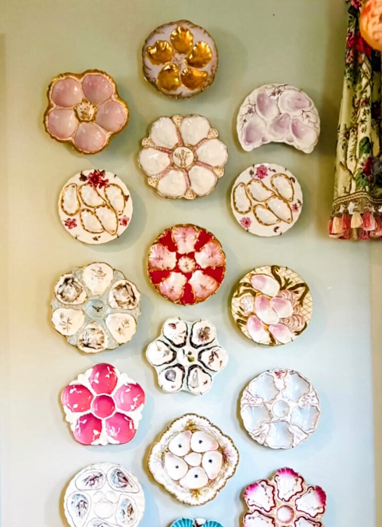 LOVE a plate wall. I’ve been wanting oyster plates to decorate with since we have oyster shells on our beach and Howard and Tommy love shucking and serving them…hopefully in Lyon. I saw some at an antique store yesterday that were $150 each.